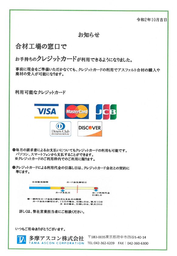クレジットカード利用開始のお知らせ